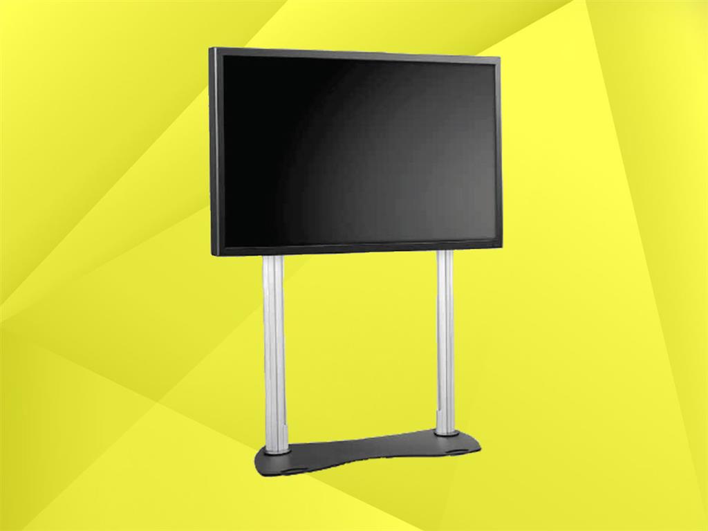 Dynamic Screen-Lifter; 5Punkt Lock&Secure Aufnahme; elektrische, variable Höhenverstellung der Aufnahme; Aluminium; silberne Standrohre mit intergrierter Kabelführung; schwarzer Standfuß; inkl. schwarzem Unterbau (115x60x19,5cm) für Verkabelung/Zuspieler; Präsentationshöhe (Center Screen) 1,80m; Tragkraft 120kg